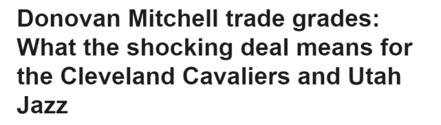 ESPN评级米切尔1换8交易:爵士收获未来评B+ 骑士埋隐患评C