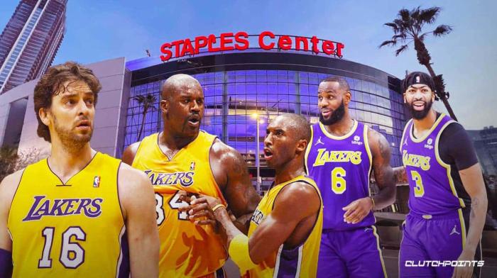 自从在斯台普斯中心打球以来,湖人队赢得了六次NBA总冠军(2000年、2001年、2002年、2009年、2010年、2020年),其中2020年的总冠军是在佛罗里达州的复赛园区内赢得的。