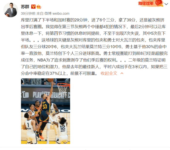 打脸!17位专家16人支持勇士晋级,灰熊官推大笑,苏群杨毅仍狂赞库里!