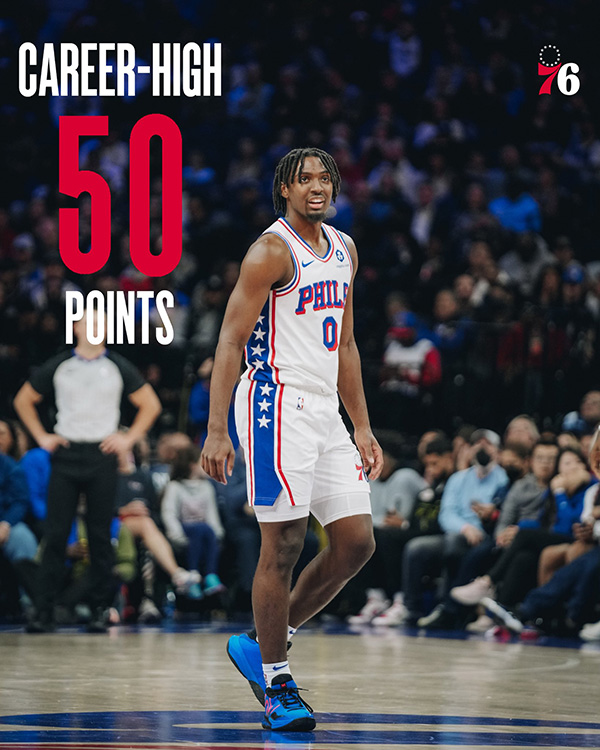 4、马克西(23岁8天)成为76人队史单场砍下50+第二年轻的球员,仅次于艾弗森(21岁309天)