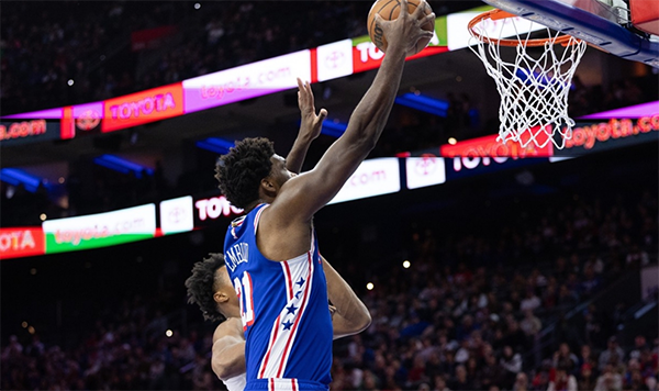 第四节,马克西传球,恩比德直接暴扣。恩比德被阿奴诺比撞倒,他两罚中一,紧接着西亚卡姆的上篮被恩比德封盖,但裁判示意干扰球。76人保持领先,成功拿下胜利。