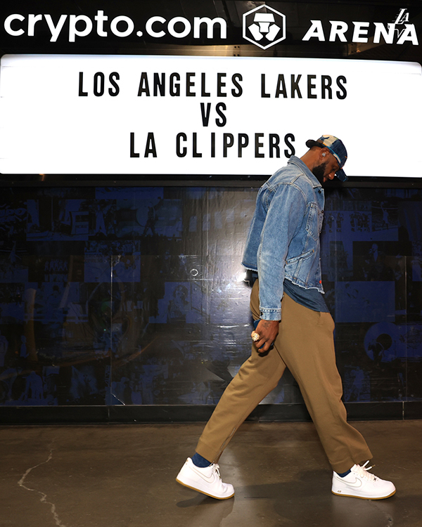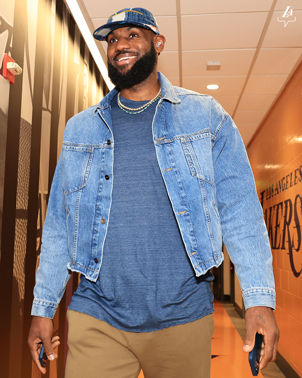 距离洛城德比开打还有3个多小时,湖人官方就晒出詹姆斯的入场照——38岁的詹姆斯身穿牛仔外套、戴着棒球帽和金链子,手里拿着两部手机,还戴着一枚戒指,满脸笑容十分开心,整个人的心情很不错。