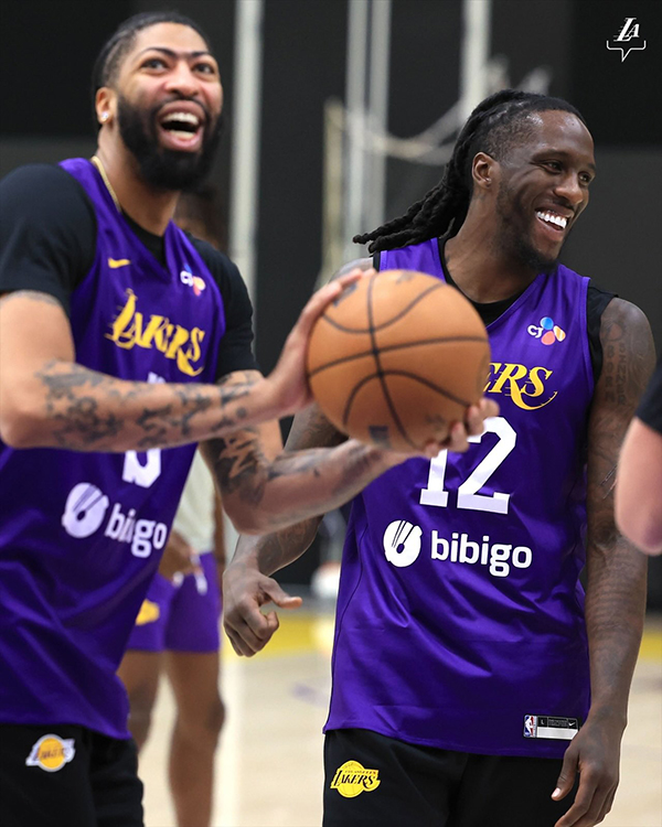 湖人官方晒出备战照,浓眉、普林斯都是咧嘴大笑,詹姆斯的表情十分严肃。