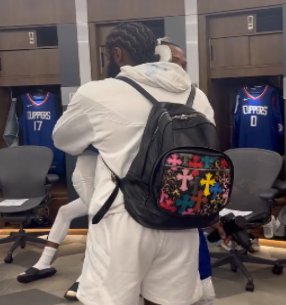 来到更衣室后,哈登与威少交流,哈登好像在找自己的位置,之后哈登和威少拥抱,昔日队友再次重建,新赛季他们将一起联手冲击总冠军。
