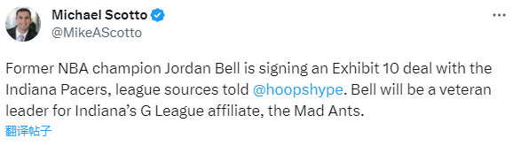 2017-18赛季,乔丹-贝尔的菜鸟赛季为勇士出战57场比赛,场均贡献4.6分3.6篮板1.8助攻,并且跟随球队夺得总冠军;贝尔曾和杜兰特、库里等大牌球星当过队友,他是2017年二轮秀,恐怕未来重返NBA的希望不大,预计新赛季他将为步行者发展联盟球队效力。