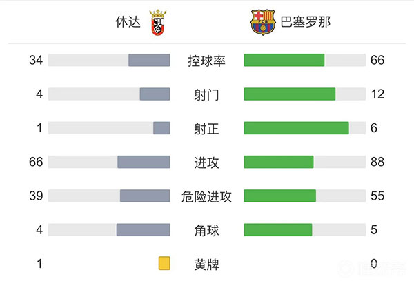 第41分钟,凯西前场左路断球后传到禁区弧顶,拉菲尼亚调整一步左脚兜射,皮球钻入球门左下角!休达0-1巴塞罗那