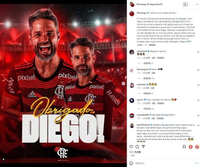 迭戈今年37岁,目前效力于弗拉门戈,他宣布将在本赛季末退役。迭戈曾随巴西队夺得两次美洲杯冠军。